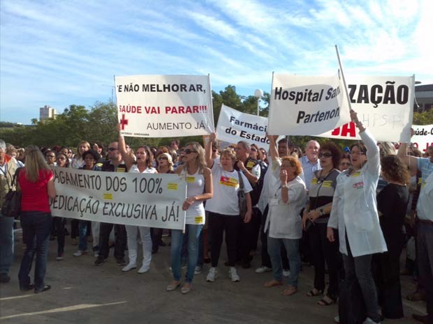 "Se não melhorar, a saúde vai parar", dizia um dos cartazes no protesto.